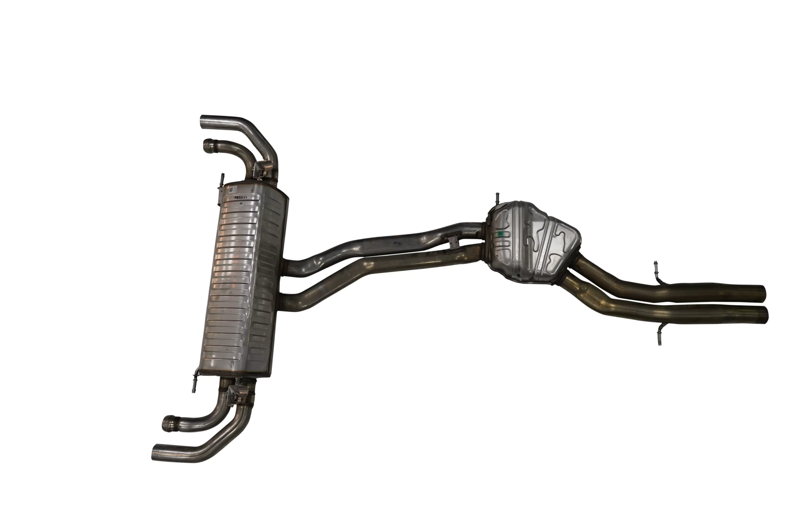 Bentley Bentayga silver exhaust system, OEM part 36A253411. Designed for precise fit and maximum performance, this exhaust system ensures optimal engine efficiency, superior sound quality, and maintains the premium styling of your Bentayga. Ideal for replacement or performance upgrades.